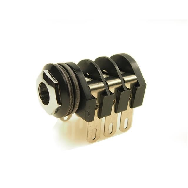 Features a connector type acknowledged as Phone Jack. Defined with Female gender configuration for connector compatibility. Matches the industry standard diameter of 6.35mm (0.250", 1/4") - Headphone for connector alignment. Fitted with Three Switches internal switch(es) for reliable control. Mounting configuration Panel Mount, Through Hole, Right Angle for structural stability. Overall positions or contacts 3 Conductors, 6 Contacts for electrical connections. Temperature range -10°C ~ 70°C for environmental conditions impacting thermal efficiency. Type of housing Bag for safeguarding or transporting components. Product status Active concerning availability and lifecycle. Classification series for the product or component S4. Shielding Unshielded for EMI/RFI protection. Signal routes Stereo (3 Conductor, TRS) for communication or control functions. Termination method Solder Lug for electrical or mechanical connections.