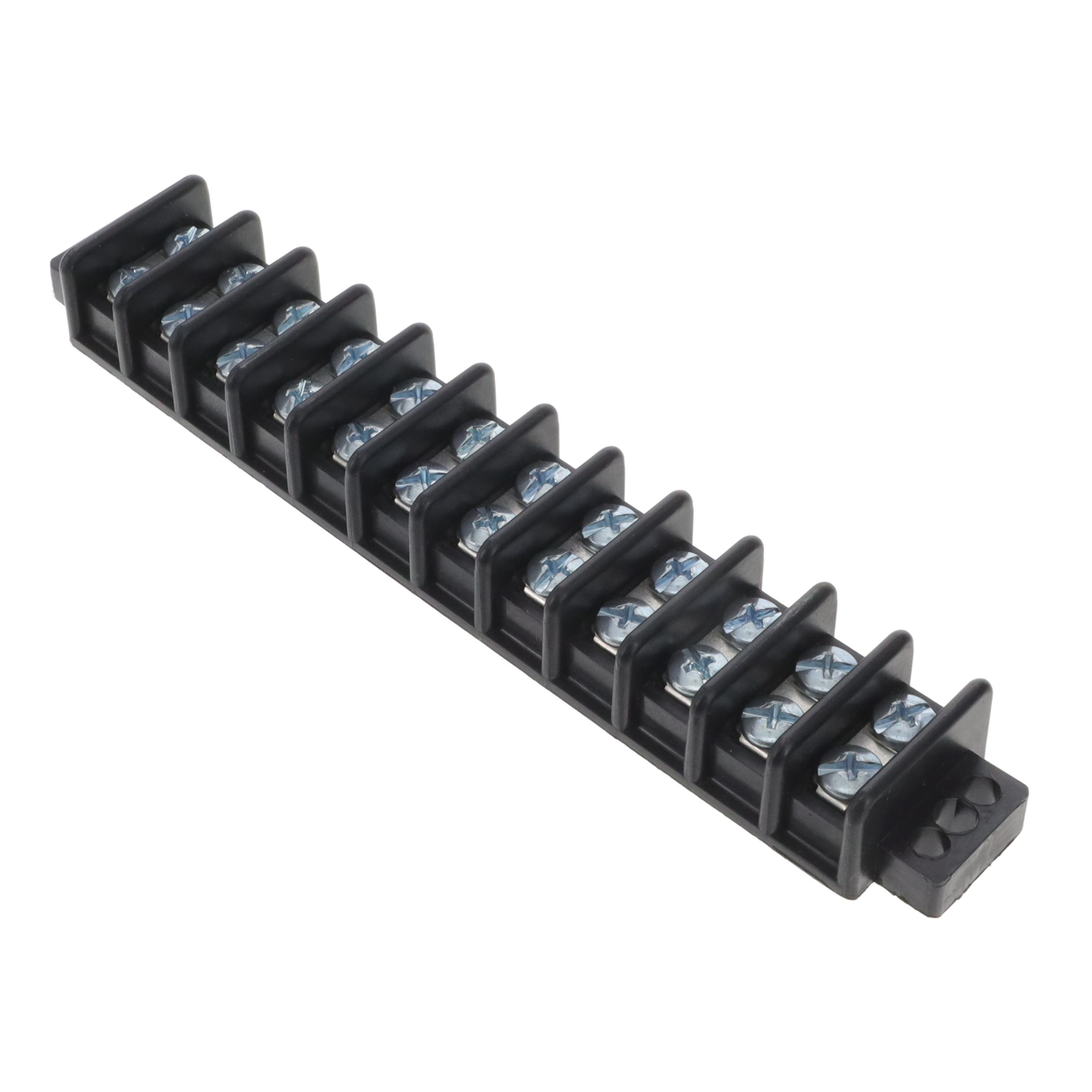 Utilizes a barrier style known as 2 Wall (Dual) for improved protection. Features a bottom connection style known as Closed. Offered in a shade referred to as Black to enhance the system's aesthetics. Facilitates a maximum output current level set as Closed. Sets the ampere rating to 45A. Equipped with features categorized as Flange. The total number of circuits stands at 12 for electrical or electronic setups. Overall rows 2 for setting up matrices or displays. Cable entry points 24 for efficient cable organization. Type of housing Bulk for safeguarding or transporting components. Distance 0.562" (14.27mm) for arranging components or aligning connectors. Product status Active concerning availability and lifecycle. Classification series for the product or component Magnum® TB345. Design of terminal block Barrier Block for electrical connections. Style of upper connection Screws for components or links. Voltage specification 600V for electronic devices. Size of wire gauge 8-22 AWG according to electrical standards.