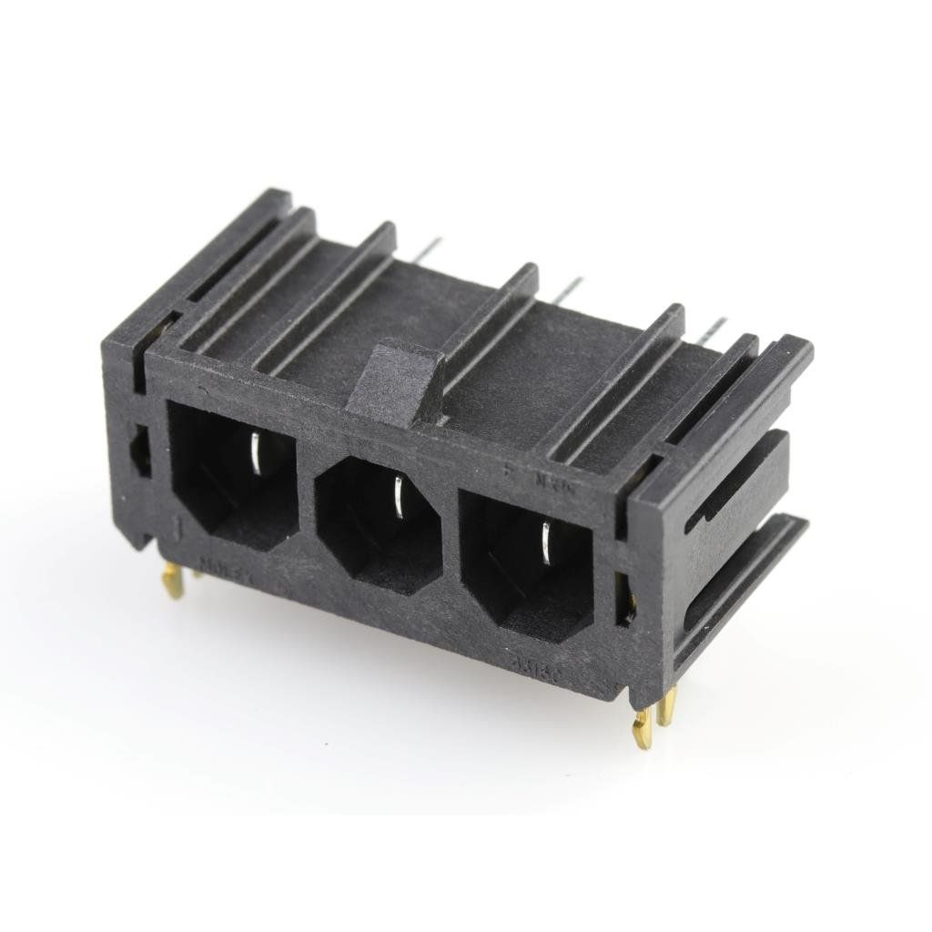 Offered in a shade referred to as Black to enhance the system's aesthetics. Features a connector type acknowledged as Header, Male Blades. Equipped with features categorized as Board Lock. Mounting configuration Through Hole, Right Angle for structural stability. Overall number of positions 3 for switches or mechanical components. Overall rows 1 for setting up matrices or displays. Type of housing BulkBulk for safeguarding or transporting components. Distance 0.295" (7.50mm) for arranging components or aligning connectors. Product status Active concerning availability and lifecycle. Classification series for the product or component Sabre 43160. Termination method Solder for electrical or mechanical connections.