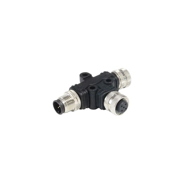 Utilizes a connector style known as Distributor T-Shaped. Crafted to convert from the adapter side noted at Female Sockets. Converts to the adapter side specified as Male Pins (2). Utilizes a fastening type recognized as Threaded. Equipped with features categorized as Coupling Nut. Constructed from Polyvinyl Chloride (PVC) material to guarantee strength and reliability. Rated with IP IP67 - Dust Tight, Waterproof to safeguard against dust and moisture penetration. Mounting configuration Free Hanging (In-Line) for structural stability. Positions (convert from) 5 for control or switching functions. Positions (convert to) 5 (2) for device configuration. Type of housing Bulk for safeguarding or transporting components. Product status Active concerning availability and lifecycle. Classification series for the product or component Buccaneer® M12. Transform shell insert dimensions from M12 for reference purposes. Transform shell insert dimensions to M12 for reference purposes. Shielding Unshielded for EMI/RFI protection.