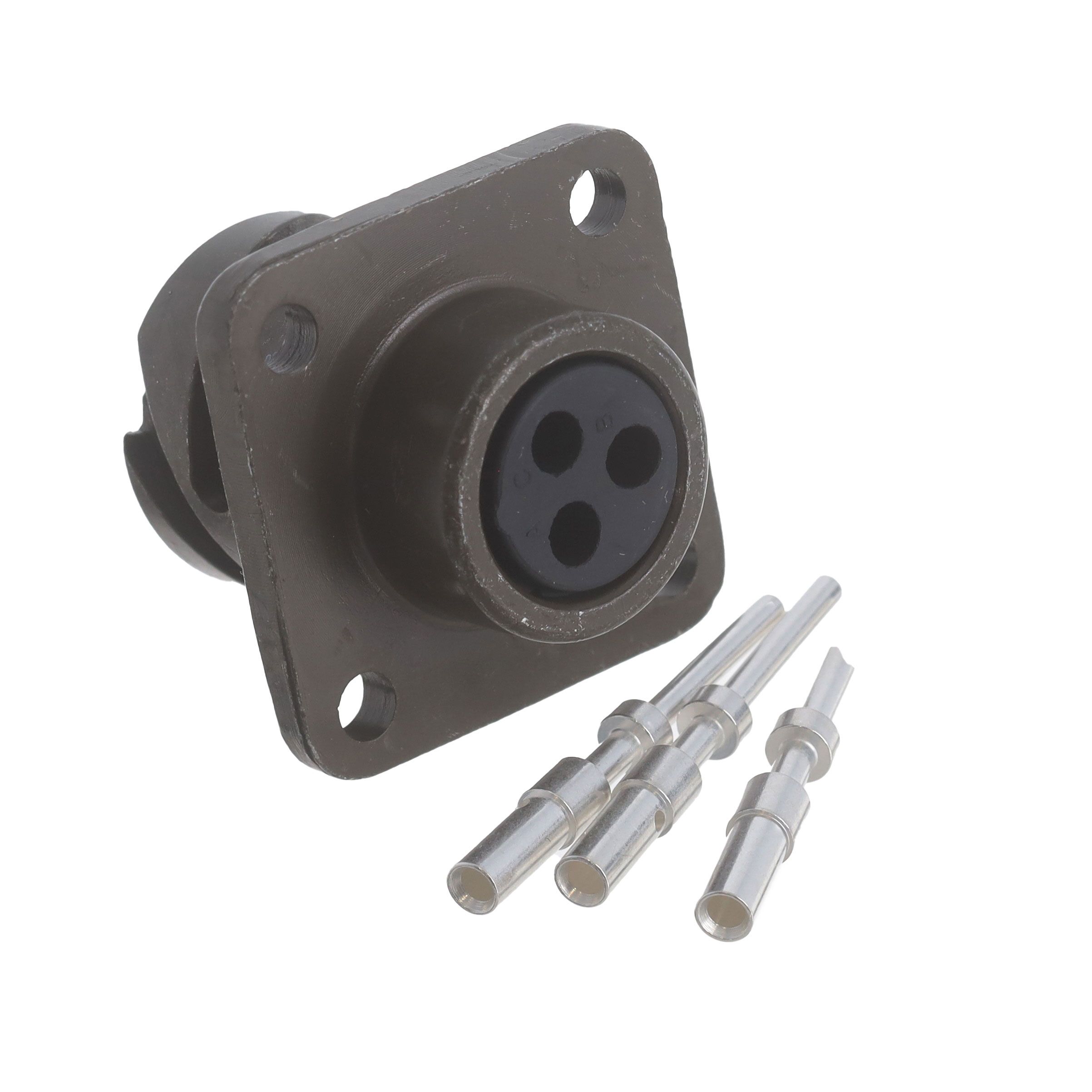 Offered in a shade referred to as Olive Drab to enhance the system's aesthetics. Features a connector type acknowledged as Receptacle, Male Pins. Offers mating contact finish rated at Silver. Sets the ampere rating to 22A. Utilizes a fastening type recognized as Reverse Bayonet Lock. Rated with IP IP67 - Dust Tight, Waterproof to safeguard against dust and moisture penetration. Type of mount Flange for easy installation. Mounting configuration Panel Mount for structural stability. Overall number of positions 3 for switches or mechanical components. Temperature range -55°C ~ 125°C for environmental conditions impacting thermal efficiency. Alignment N (Normal) for proper installation or signal positioning. Type of housing Bag for safeguarding or transporting components. Primary material Metal for structural and functional applications. Product status Active concerning availability and lifecycle. Classification series for the product or component VG 95234, CA-B. Surface treatment on the shell Olive Drab Cadmium for visual appeal and protection. Material makeup of the housing Aluminum Alloy for thermal and mechanical properties. Provide shell dimensions 10SL-3 to ensure connector compatibility. Termination method Solder Cup for electrical or mechanical connections.