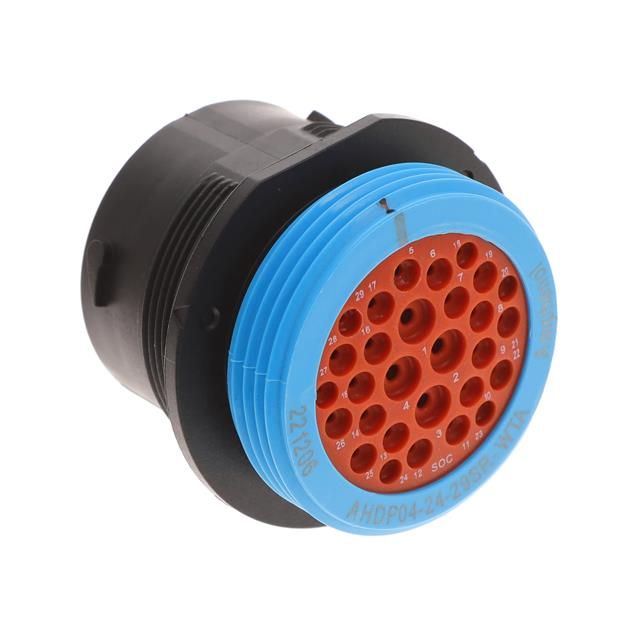 Features a connector type acknowledged as Receptacle Housing. Indicates the contact size classified at 12 (4), 16 (19), 20 (6). Makes use of a contact type known as Crimp. Utilizes a fastening type recognized as Bayonet Lock. Available in Black color for the enclosure to assist in visual recognition. Employs Black light type for maximum brightness. Rated with IP IP67/IP69K - Dust Tight, Water Resistant, Waterproof to safeguard against dust and moisture penetration. Type of mount Bulkhead - Front Side Nut for easy installation. Mounting configuration Panel Mount for structural stability. Overall number of positions 29 (Radsok) for switches or mechanical components. Alignment Keyed for proper installation or signal positioning. Type of housing Bulk for safeguarding or transporting components. Product status Active concerning availability and lifecycle. Classification series for the product or component DuraMate™ AHDP. Material makeup of the housing Thermoplastic for thermal and mechanical properties. Provide shell dimensions 24-29 to ensure connector compatibility. Shielding Unshielded for EMI/RFI protection. Type classification For Female Sockets for specifications.