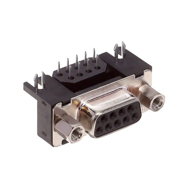 Provides a rear space of 0.299" (7.60mm) for proper installation alignment. Utilizes a connector style known as D-Sub. Features a connector type acknowledged as Receptacle, Female Sockets. Includes contact finish plated at Gold to improve conductivity. Represents the thickness of the contact finish recorded at 4.00µin (0.100µm). Makes use of a contact type known as Signal. Sets the ampere rating to 5A. Equipped with features categorized as Mounting Brackets. Offers flange specifications defined as Mating Side, Female Screwlock (M2.6). Classification UL94 V-0 for adherence to fire safety regulations. Mounting configuration Panel Mount, Through Hole, Right Angle for structural stability. Overall number of positions 9 for switches or mechanical components. Overall rows 2 for setting up matrices or displays. Type of housing Tray for safeguarding or transporting components. Primary material Metal for structural and functional applications. Product status Active concerning availability and lifecycle. Classification series for the product or component DE. Material and finish of the shell Steel, Nickel Plated for strength. Shell dimensions for connector setup 1 (DE, E) for proper fitting. Termination method Solder for electrical or mechanical connections.