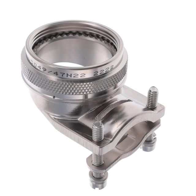 Permits a cable exit orientation of 90° for versatile routing possibilities. Supports a cable opening size of 0.380" ~ 0.820" (9.65mm ~ 20.83mm) for convenient entry. Offered in a shade referred to as Silver to enhance the system's aesthetics. Shows the external diameter assessed at 1.650" (41.91mm). Equipped with features categorized as Strain Relief. Type of construction material Aluminum Alloy for durability and efficiency. Type of housing Retail Package for safeguarding or transporting components. A metallic layer Electroless Nickel to enhance conductivity and resist corrosion. Primary material Metal for structural and functional applications. Product status Active concerning availability and lifecycle. Classification series for the product or component Military, SAE AS85049. Provide shell dimensions 22, 23 to ensure connector compatibility. Shielding Unshielded for EMI/RFI protection. Type classification Cable Clamp for specifications.
