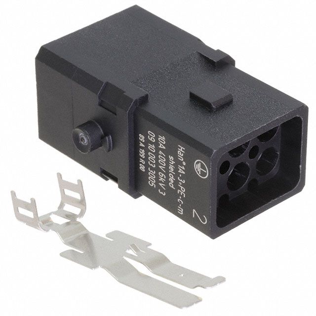 Features a connector type acknowledged as Insert. Sets the ampere rating to 10A. Defined with Male gender configuration for connector compatibility. Overall number of positions 3+Ground for switches or mechanical components. Temperature range -30°C ~ 90°C for environmental conditions impacting thermal efficiency. Type of housing Bulk for safeguarding or transporting components. Product status Obsolete concerning availability and lifecycle. Classification series for the product or component Han® 1A. Total dimensions 1A for physical characteristics. Type of termination Crimp for connector or device. Voltage specification 400V for electronic devices.