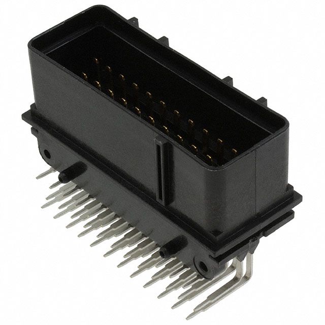 Specifies connector spacing defined as 0.197" (5.00mm) for suitable PCB layout. Features a connector type acknowledged as Header. Offers mating contact finish rated at Gold. Provides a post-contact finish defined by Tin. Constructed from the contact material known as Brass. Crafted with a contact shape described as Rectangular. Makes use of a contact type known as Tab. Utilizes a fastening type recognized as Locking Ramp. Equipped with features categorized as Board Guide. Available in Black color of insulation for easy identification. An insulation height of 1.165" (29.60mm) provides sufficient electrical clearance. Constructed with Polyamide (PA), Nylon, Glass Filled insulation material for durability. Mounting configuration Through Hole, Right Angle for structural stability. Overall number of positions 36 for switches or mechanical components. Occupied positions All for mechanical assembly. Overall rows 3 for setting up matrices or displays. Type of housing Bulk for safeguarding or transporting components. The distance 0.197" (5.00mm) to achieve correct alignment with the corresponding connector. Product status Active concerning availability and lifecycle. The 0.236" (6.00mm) spacing between rows for proper connector alignment to ensure a precise fit. Classification series for the product or component EconoSeal III 070. Extent of insulation Shrouded - 4 Wall for protective measures. Style variant Board to Cable/Wire for design or arrangement. Termination method Solder for electrical or mechanical connections.