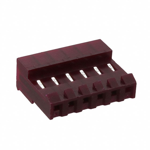Employs a cable termination method known as IDC. Offered in a shade referred to as Red to enhance the system's aesthetics. Features a connector type acknowledged as Receptacle. Includes contact finish plated at Tin to improve conductivity. Makes use of a contact type known as Female Socket. Utilizes a fastening type recognized as Locking Ramp. Equipped with features categorized as Closed End. Mounting configuration Free Hanging (In-Line), Right Angle for structural stability. Overall number of positions 6 for switches or mechanical components. Overall rows 1 for setting up matrices or displays. Type of housing Bag for safeguarding or transporting components. Distance 0.156" (3.96mm) for arranging components or aligning connectors. Product status Active concerning availability and lifecycle. Classification series for the product or component MTD. Size of wire gauge 22 AWG according to electrical standards. Wire type Discrete or Ribbon Cable for electrical or signal applications.