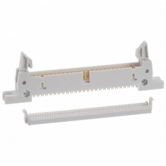 Employs a cable termination method known as IDC. Assesses resistance at forward current Tariff may apply if shipping to the United States for LED or diode testing. Offered in a shade referred to as Gray to enhance the system's aesthetics. Features a connector type acknowledged as Header. Includes contact finish plated at Gold to improve conductivity. Makes use of a contact type known as Male Pin. Utilizes a fastening type recognized as Latch Lock/Eject Hooks, Short. Equipped with features categorized as Feed Through. Mounting configuration Panel Mount for structural stability. Overall number of positions 50 for switches or mechanical components. Overall rows 2 for setting up matrices or displays. Type of housing Tray for safeguarding or transporting components. Distance 0.100" (2.54mm) for arranging components or aligning connectors. Product status Obsolete concerning availability and lifecycle. The 0.100" (2.54mm) spacing between rows for connectors or PCB layout. The classification for import duties Tariff may apply if shipping to the United States related to import and export transactions. Maximum Vce(on) at Vge Tariff may apply if shipping to the United States for transistor specifications. Wire type Ribbon Cable for electrical or signal applications.