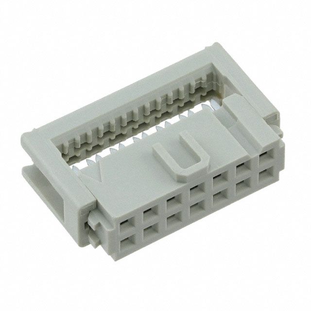 Employs a cable termination method known as IDC. Features a connector type acknowledged as Receptacle. Includes contact finish plated at Gold to improve conductivity. Makes use of a contact type known as Female Socket. Equipped with features categorized as Feed Through, Polarizing Key. Mounting configuration Free Hanging (In-Line) for structural stability. Overall number of positions 14 for switches or mechanical components. Overall rows 2 for setting up matrices or displays. Type of housing Tray for safeguarding or transporting components. Distance 0.100" (2.54mm) for arranging components or aligning connectors. Product status Active concerning availability and lifecycle. The 0.100" (2.54mm) spacing between rows for connectors or PCB layout. Classification series for the product or component SEK. Size of wire gauge 26-28 AWG according to electrical standards. Wire type Ribbon Cable for electrical or signal applications.