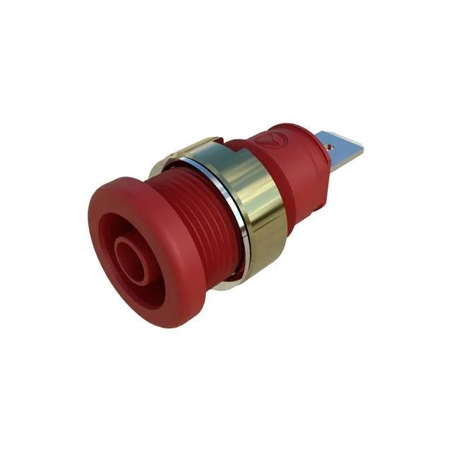 Offered in a shade referred to as Red to enhance the system's aesthetics. Defined with Female gender configuration for connector compatibility. Insulation with a rating of Mating End Insulated for safety and efficiency. Mounting configuration Panel Mount, Through Hole for structural stability. Type of housing Bulk for safeguarding or transporting components. The Standard Banana diameter of the plug/mating plug to ensure connector compatibility. Product status Active concerning availability and lifecycle. Termination method Quick Connect for electrical or mechanical connections. Type classification Banana Jack for specifications.