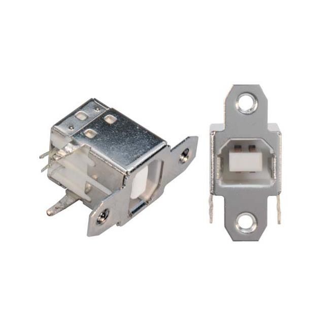 Features a connector type acknowledged as USB-B (USB TYPE-B). Defined with Receptacle gender configuration for connector compatibility. Type of mount Horizontal for easy installation. Mounting configuration Panel Mount, Through Hole, Right Angle for structural stability. The total number of contacts is 4 for switches or connectors. Overall number of ports 1 for communication or connectivity. Temperature range -55°C ~ 85°C for environmental conditions impacting thermal efficiency. Type of housing Bag for safeguarding or transporting components. Product status Active concerning availability and lifecycle. Classification series for the product or component UC. Shielding Shielded for EMI/RFI protection. Information USB 2.0 for detailed product data. Termination method Solder for electrical or mechanical connections.