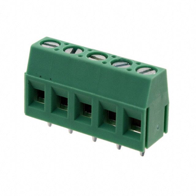 Assesses resistance at forward current Tariff may apply if shipping to the United States for LED or diode testing. Offered in a shade referred to as Green to enhance the system's aesthetics. Supports a current specification of 16 A for dependable electrical operation. Facilitates a maximum output current level set as 16 A. Equipped with features categorized as Interlocking (Side). Placement of the connector Horizontal with Board to ensure proper alignment. Mounting configuration Through Hole for structural stability. Overall levels 1 for multi-tier systems. Type of housing Bulk for safeguarding or transporting components. Distance 0.200" (5.08mm) for arranging components or aligning connectors. Positions available at each tier 5 for mechanical or electrical configurations. Product status Active concerning availability and lifecycle. Classification series for the product or component 21-508. The classification for import duties Tariff may apply if shipping to the United States related to import and export transactions. Maximum Vce(on) at Vge Tariff may apply if shipping to the United States for transistor specifications. The voltage specification 300 V for electrical parameters. Size of wire gauge 12-28 AWG according to electrical standards. Wire termination Screw - Rising Cage Clamp for connection type.