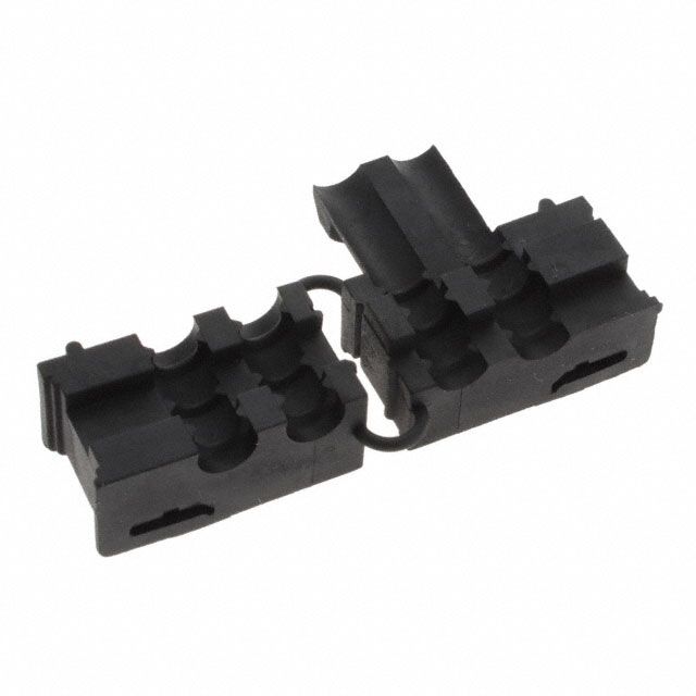Incorporates a grommet style labeled as Frame Grommet, Split to protect the wiring. Offered in a shade referred to as Black to enhance the system's aesthetics. Features the internal diameter assessed at 0.197" (5.00mm). Equipped with features categorized as 2 Cable Openings. Designed for related items marked as Cable, Wires. Type of construction material Thermoplastic for durability and efficiency. Classification UL94 HB for adherence to fire safety regulations. Type of housing Bulk for safeguarding or transporting components. Product status Active concerning availability and lifecycle.
