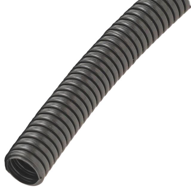 Offered in a shade referred to as Black to enhance the system's aesthetics. Features the internal diameter assessed at 0.650" (16.51mm). Shows the external diameter assessed at 0.827" (21.00mm). Delivers protection from environmental influences classified as UV Resistant, Weather Resistant. Overall length 164' (50.00m) for size indication. Rated Fluid Resistant, Fuel Resistant, Oil Resistant to protect against liquid ingress and potential damage. Type of construction material Polyethylene (PE), Halogen Free for durability and efficiency. Classification UL94 HB for adherence to fire safety regulations. Temperature range -40°C ~ 130°C for environmental conditions impacting thermal efficiency. Type of housing Box for safeguarding or transporting components. Product status Active concerning availability and lifecycle. Classification series for the product or component HELUcond PP. Type classification Wire Loom, Protective Hose for specifications. Features of type Convoluted, Corrugated for classification information.