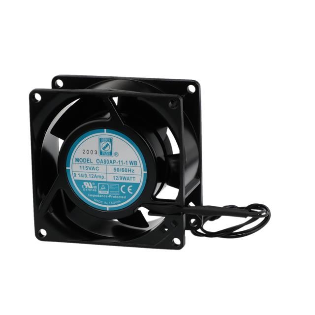 Delivers airflow rated at 30.0 CFM (0.840m³/min) for optimal cooling efficiency. Complies with the criteria of entities acknowledged as cURus, TUV. Equipped with a Ball type bearing for reliable mechanical rotation. Facilitates a maximum output current level set as 0.220 in H2O (54.8 Pa). Specifies the fan type categorized as Tubeaxial. Noise level measurement 36.0dB for sound or electronic quality. Temperature range -4 ~ 176°F (-20 ~ 80°C) for environmental conditions impacting thermal efficiency. Type of housing Box for safeguarding or transporting components. Power measured in watts 9.00W for optimal operation. Product status Active concerning availability and lifecycle. The RPM value 3000 RPM for motors or mechanical devices. Classification series for the product or component OA80. Details on package size Square - 80mm L x 80mm H for electrical or mechanical components. Measurement dimensions Square - 80mm L x 80mm H for component specifications. Static pressure value 0.220 in H2O (54.8 Pa) for air or fluid systems. Termination method 2 Wire Leads for electrical or mechanical connections. The operating voltage rating of the device 115VAC. Horizontal width measurement 38.00mm.