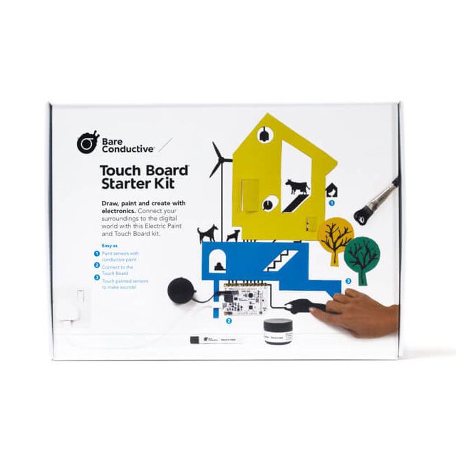 Includes Bare Conductive Touch Board MCU/MPU boards for integration into embedded systems. Offers a Arduino R3 Shield connectivity structure for continuous access. Offers Starter Kit kit type tailored for its intended application. Main application Human Interface for focused usage. Type of housing Bulk for safeguarding or transporting components. Product status Active concerning availability and lifecycle. Classification series for the product or component Bare Conductive. Preferred coding environment Arduino IDE for development tasks. IC or component ATmega32U4 utilized in circuit design.