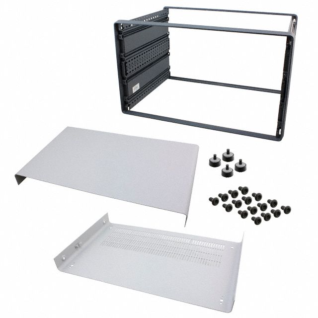 Occupies an area of 242in² (1561cm²) for an appropriate footprint. Offered in a shade referred to as Gray to enhance the system's aesthetics. Comes in a container style referred to as Box. Crafted with a specification of Split Sides. Lists face size details recorded at 242in² (1561cm²). Equipped with features categorized as Vented. Features a height of 11.043" (280.50mm) for accurate dimensional precision. Type of construction material Metal, Aluminum for durability and efficiency. Type of housing Box for safeguarding or transporting components. Product status Active concerning availability and lifecycle. Classification series for the product or component compacPRO. Details on package size 18.543" L x 13.031" W (471.00mm x 331.00mm) for electrical or mechanical components. Measurement dimensions 18.543" L x 13.031" W (471.00mm x 331.00mm) for component specifications. Measurement of thickness 0.059" (1.50mm) for material or component dimensions.
