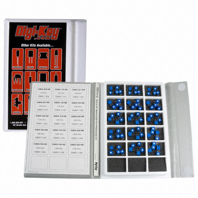 Offers Trimmer kit type tailored for its intended application. Total number of windings 1 for coils or inductors. Type of housing Bulk for safeguarding or transporting components. Power measured in watts 1/2W for optimal operation. Quantity in stock 75 Pieces (15 Values - 5 Each) for order fulfillment or inventory control. Ohmic resistance value 50 ~ 2M for accurate electrical information. The makeup of resistive components Cermet intended for electrical or sensor applications. Classification series for the product or component Trimpot® 3386 - Sealed. Type of termination PC Pins for connector or device. Precision tolerance level ±10% in manufacturing processes.