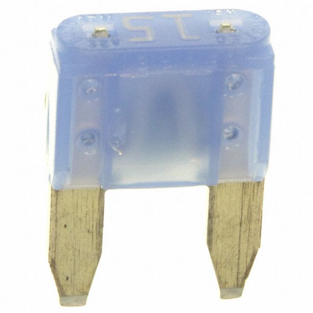 Has a breaking capacity of 1kA at its designated voltage. Offered in a shade referred to as Blue to enhance the system's aesthetics. Sets the ampere rating to 15 A. Supports Automotive fuse specifications to meet safety standards. Mounting configuration Requires Holder for structural stability. Type of housing Bulk for safeguarding or transporting components. Style of the enclosure/case Blade, Miniature that offers mechanical and thermal protection. Product status Active concerning availability and lifecycle. Time taken to respond Fast Blow for rapid operation or detection. Classification series for the product or component ATM. Details on package size 0.430" L x 0.150" W x 0.347" H (10.92mm x 3.81mm x 8.81mm) for electrical or mechanical components. Measurement dimensions 0.430" L x 0.150" W x 0.347" H (10.92mm x 3.81mm x 8.81mm) for component specifications. The highest DC voltage specification 32 V for components.