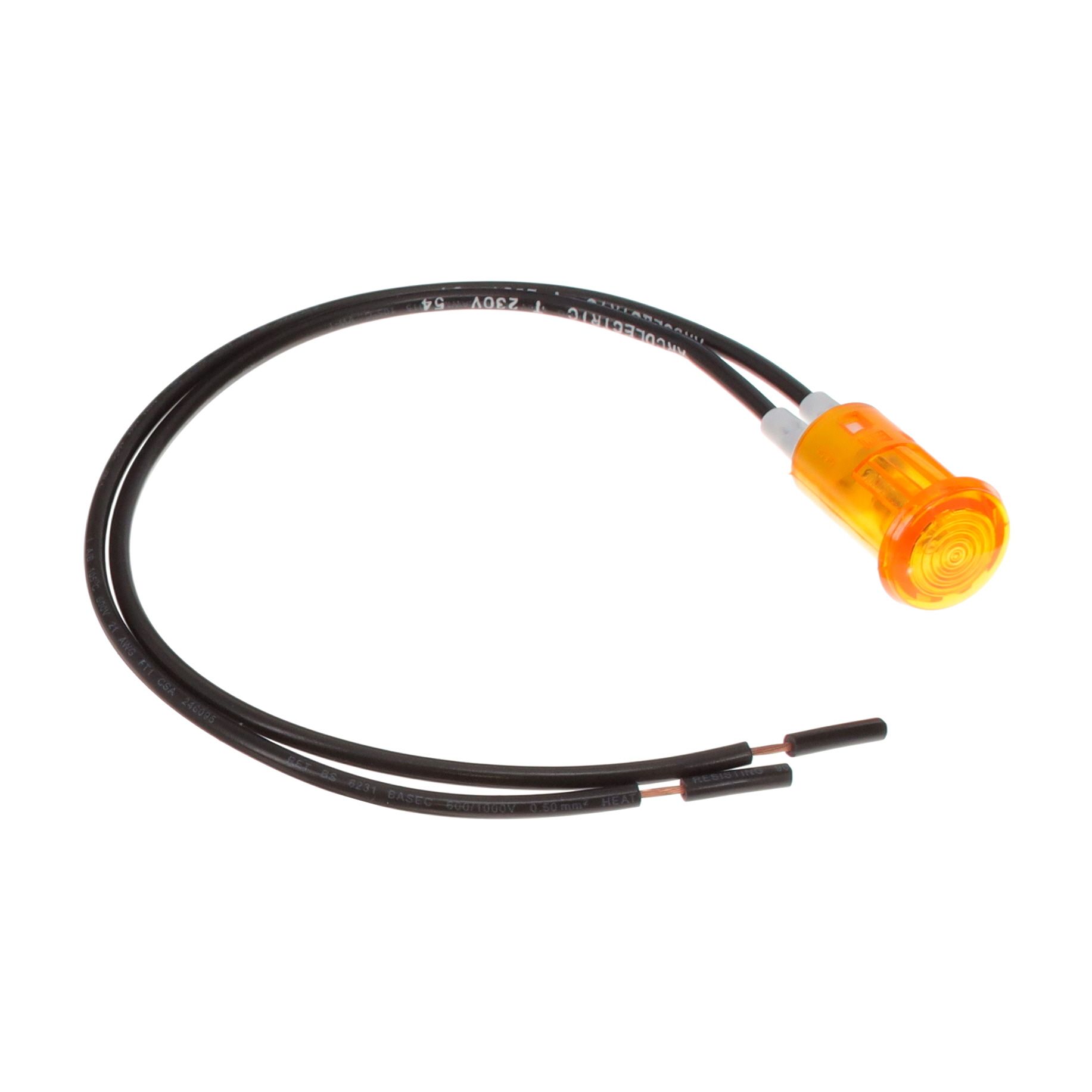 Bulb emits Amber color for efficient lighting. Lens color Amber for improved visual clarity or signaling. Lens configuration Round with Domed Top combining utility with aesthetic appeal. Lens transparency Diffused ensuring maximum light passage. Type of housing Bulk for safeguarding or transporting components. Specifications of the cutout 0.50" (12.70mm) for accurate mounting. Shape of the cutout Round for installation guidelines. Product status Active concerning availability and lifecycle. Classification series for the product or component NL. Type of termination Wire Leads - 8" (203.20mm) for connector or device. Type classification Neon for specifications. The voltage specification 250V for electrical parameters.