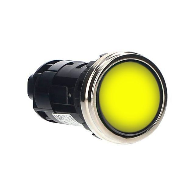 Rated with IP IP20, IP65 to safeguard against dust and moisture penetration. Lens color Yellow for improved visual clarity or signaling. Lens dimensions 22.00mm Dia for proper fitting and application. Lens configuration Round with Flat Top combining utility with aesthetic appeal. Type of housing Bulk for safeguarding or transporting components. Shape of the cutout Round for installation guidelines. Product status Active concerning availability and lifecycle. Criteria AC/DC for electrical, mechanical, or environmental performance. Classification series for the product or component HW. Type of termination Screw Terminal for connector or device. Type classification LED for specifications. The voltage specification 24V for electrical parameters.
