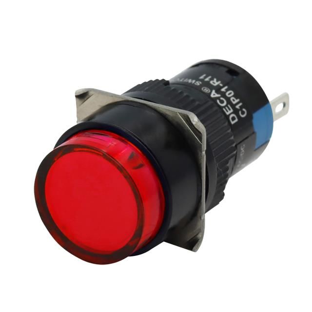 Supports a current specification of 3mA for dependable electrical operation. Facilitates a maximum output current level set as 3mA. Rated with IP IP65 to safeguard against dust and moisture penetration. Bulb emits Red color for efficient lighting. Lens dimensions 18.00mm Dia for proper fitting and application. Lens configuration Round with Flat Top combining utility with aesthetic appeal. Type of housing Box for safeguarding or transporting components. Specifications of the cutout 0.64" (16.20mm) for accurate mounting. Shape of the cutout Round for installation guidelines. Product status Active concerning availability and lifecycle. Criteria AC/DC for electrical, mechanical, or environmental performance. Type of termination Quick Connect - 0.110" (2.8mm) for connector or device. Type classification LED for specifications. The voltage specification 24V for electrical parameters.