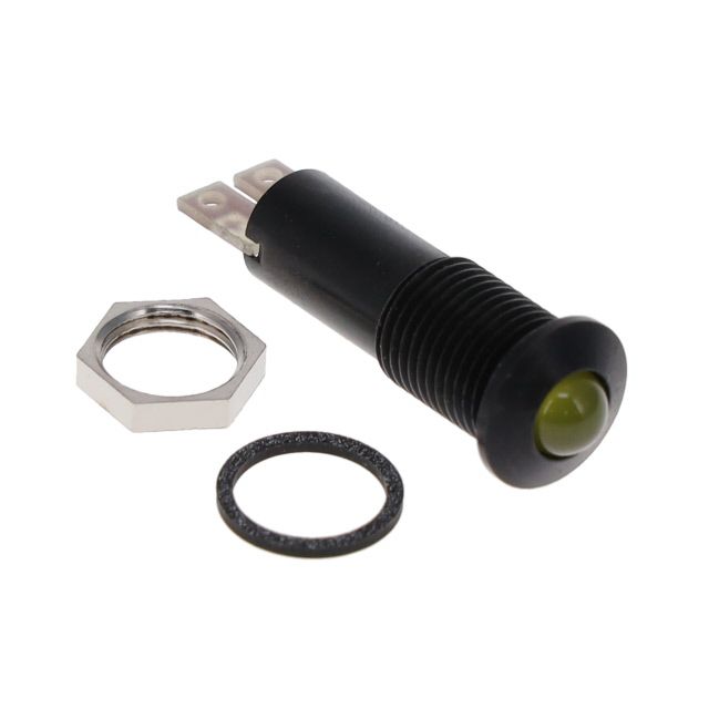 Supports a current specification of 10mA for dependable electrical operation. Facilitates a maximum output current level set as 10mA. Rated with IP IP67 to safeguard against dust and moisture penetration. Bulb emits Yellow color for efficient lighting. Lens dimensions 5mm, T-1 3/4 for proper fitting and application. Lens configuration Round with Domed Top combining utility with aesthetic appeal. Type of housing Bulk for safeguarding or transporting components. Specifications of the cutout 0.33" (8.38mm) for accurate mounting. Shape of the cutout Round for installation guidelines. Product status Active concerning availability and lifecycle. Criteria DC for electrical, mechanical, or environmental performance. Classification series for the product or component LFM. Type of termination Solder Lug for connector or device. Type classification LED for specifications. The voltage specification 24V for electrical parameters.