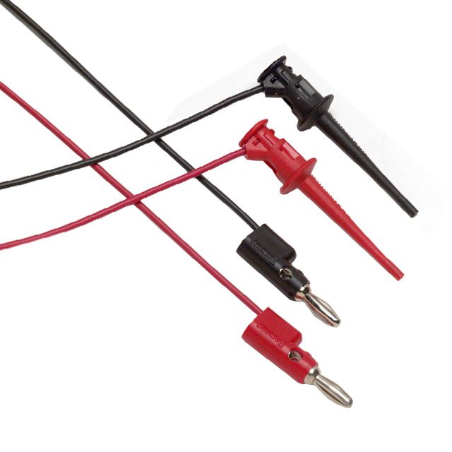 Incorporates a primary connector designed to meet Banana Plug, Single, Stackable requirements. Fitted with a secondary connector designed to Mini Pincer standards. Offered in lengths of 36.0" (914.40mm) for easy setup. Configured in a manner identified as Banana to Grabber, Hook. Contains internal parts categorized as 2 Leads, Black and Red. Sets the ampere rating to 5A. Substance Poly-Vinyl Chloride (PVC) to guarantee electrical safety via insulation. Type of housing Bulk for safeguarding or transporting components. Product status Active concerning availability and lifecycle. Layer arrangement method Multi-Stacking, Front and Vertical for construction or storage. Type classification Patch Cord for specifications. The operating voltage rating of the device 30VAC, 60VDC.