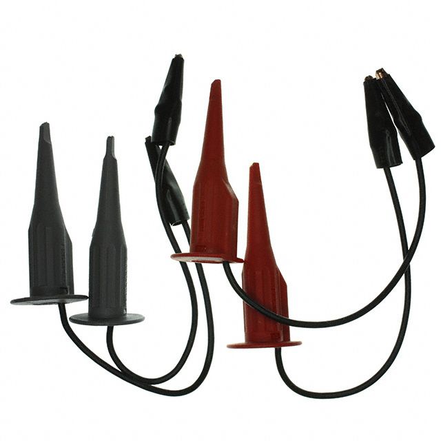 Incorporates a primary connector designed to meet Alligator Clip, Insulated requirements. Fitted with a secondary connector designed to Mini Hook standards. Configured in a manner identified as Alligator to Grabber, Hook. Contains internal parts categorized as 4 Leads, Black, Black Clips, Gray and Red and Hooks. Type of housing Bulk for safeguarding or transporting components. Product status Obsolete concerning availability and lifecycle. The operating voltage rating of the device 30VAC.