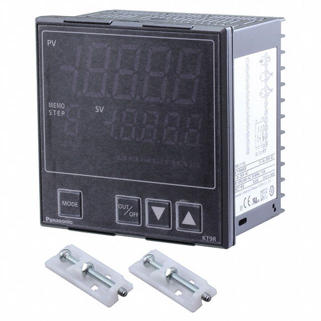 Implements a control method specified as On/Off, Proportional (PID). Emphasizes character height recorded at 0.945" (24.00mm), 0.551" (14.00mm). Features a display type recognized as LED - Dual Color Characters. Rated with IP IP66 - Dust Tight, Water Resistant to safeguard against dust and moisture penetration. The input limits of -200°C ~ 2315°C, 0 ~ 20mA, 0 ~ 10VDC guarantee compatibility with different sources. Mounting configuration Panel Mount for structural stability. The maximum number of characters allowed per row is 4, 4 for layout purposes. Type Relay (2) for ensuring compatibility with output systems. Type of housing BulkBox for safeguarding or transporting components. Specifications of the cutout Square - 92.00mm x 92.00mm for accurate mounting. Product status Obsolete concerning availability and lifecycle. Classification series for the product or component KT9R. Voltage requirement 100 ~ 240VAC for electrical specifications. Type of termination Screw Terminal for connector or device. Type classification Process, Temperature Controller (RTD, Type B, C, E, J, K, N, PLII, R, S, T) for specifications. Voltage supply 100 ~ 240VAC for device operation.