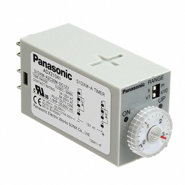 Configured for circuit type described as DPDT (2 Form C). Offers a contact rating at the voltage level of 7A @ 250VAC. Reflects the time delay noted at 0.2 Sec ~ 30 Min. Engineered with On-Delay features for versatile component usage. Mounting configuration Socketable for structural stability. Type of housing Box for safeguarding or transporting components. Product status Obsolete concerning availability and lifecycle. Configuration of relay Mechanical Relay for controlling electrical circuits. Classification series for the product or component S1DXM. Voltage requirement 12VDC for electrical specifications. Type of termination Plug In for connector or device. Timing calibration method Hand Dial for setup. Timing activation technique Input Voltage for management systems. Voltage supply 12VDC for device operation.