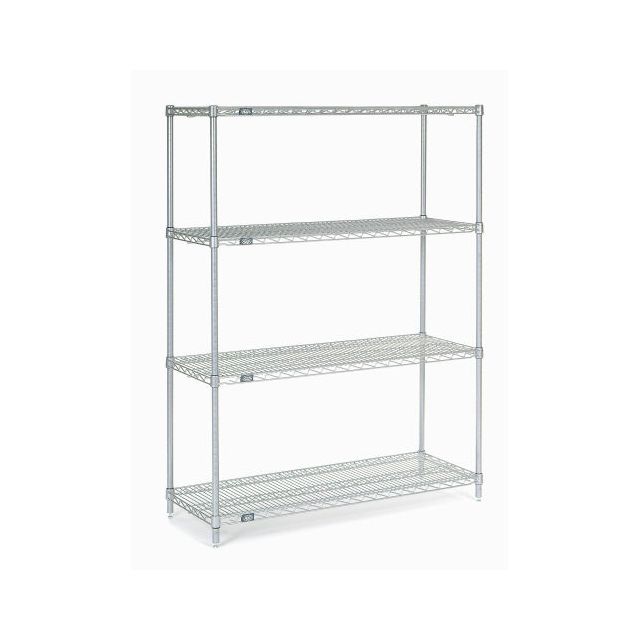 Shows a total storage capacity of 600 lbs/Shelf. Offered in a shade referred to as Gray to enhance the system's aesthetics. Details the depth recorded at 18.0 for installation use. Equipped with features categorized as 4 Shelves. Features a height of 63.0 for accurate dimensional precision. Type of construction material Stainless Steel for durability and efficiency. Type of housing Box for safeguarding or transporting components. Product status Active concerning availability and lifecycle. Type classification Wire Shelving Stand-Alone Unit for specifications. Horizontal width measurement 48.0.