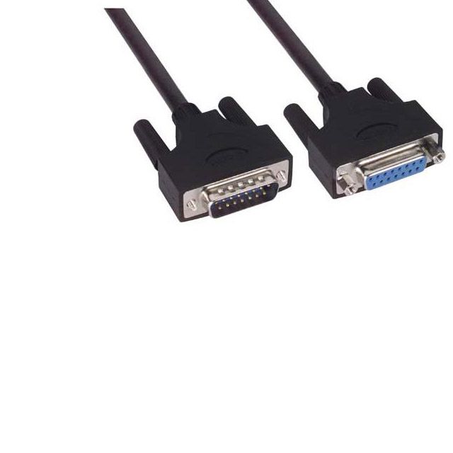 Incorporates a primary connector designed to meet Receptacle, Female Sockets requirements. Fitted with a secondary connector designed to Plug, Male Pins standards. Offered in a shade referred to as Black to enhance the system's aesthetics. Overall length 50.00' (15.24m) for size indication. Overall number of positions 15 for switches or mechanical components. Type of housing Bag for safeguarding or transporting components. Product status Active concerning availability and lifecycle. Shielding Shielded for EMI/RFI protection. Type classification DB15 for specifications.