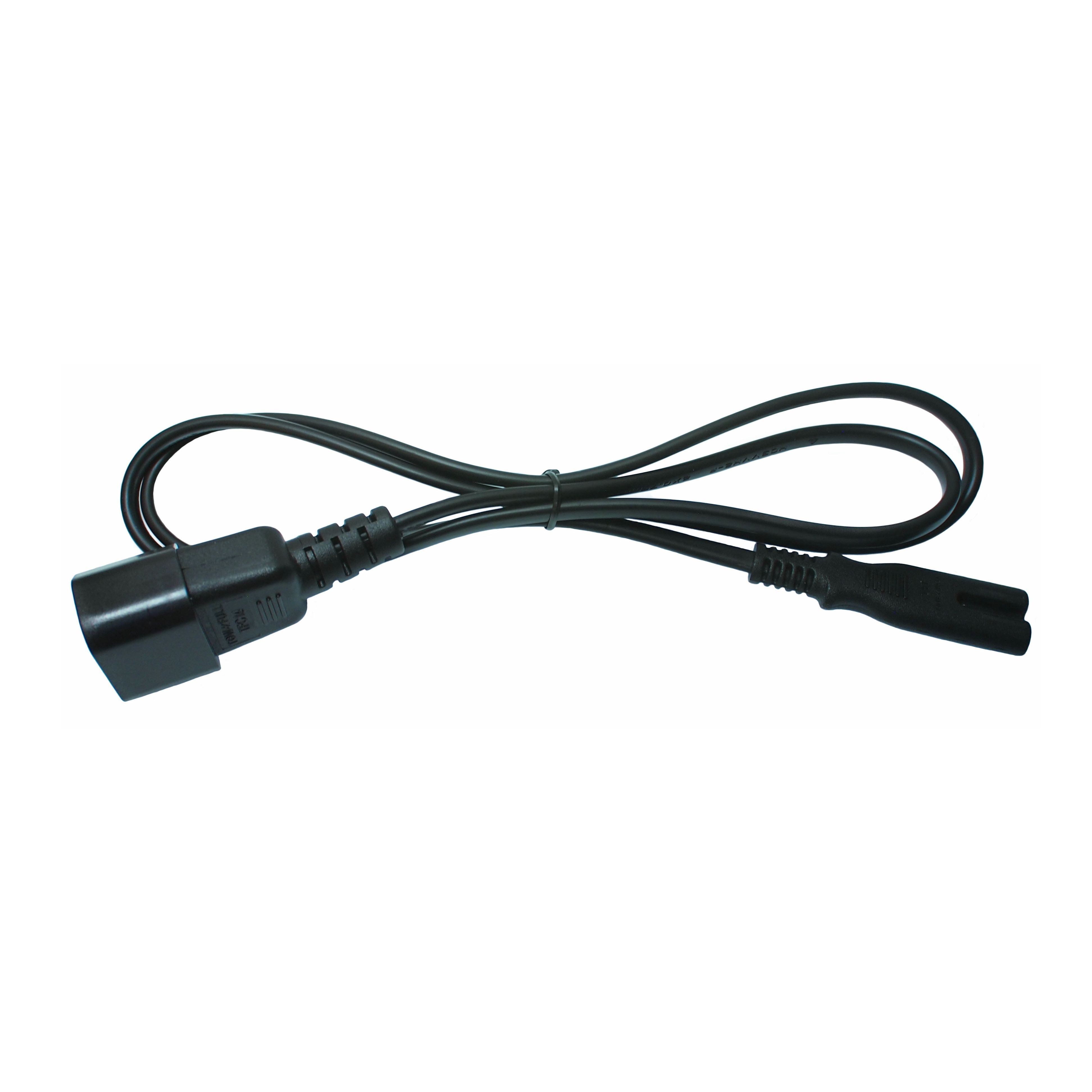 Incorporates a primary connector designed to meet IEC 320-C14 requirements. Fitted with a secondary connector designed to IEC 320-C7 standards. Assesses resistance at forward current Tariff may apply if shipping to the United States for LED or diode testing. Offered in a shade referred to as Black to enhance the system's aesthetics. Employs a cord type classified as H03VVH2-F. Sets the ampere rating to 2.5A. Overall length 3.28' (1.00m) for size indication. The total number of conductors is 2 for wiring or cabling configurations. Type of housing Bag for safeguarding or transporting components. Product status Active concerning availability and lifecycle. Shielding Unshielded for EMI/RFI protection. Style variant Male Pins (Blades) to Female Sockets (Slots) for design or arrangement. The classification for import duties Tariff may apply if shipping to the United States related to import and export transactions. Maximum Vce(on) at Vge Tariff may apply if shipping to the United States for transistor specifications. Voltage specification 250V for electronic devices. Size of wire gauge 18 AWG according to electrical standards.