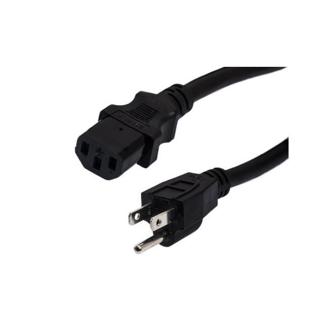 Incorporates a primary connector designed to meet NEMA 5-15P requirements. Fitted with a secondary connector designed to IEC 320-C13 standards. Offered in a shade referred to as Black to enhance the system's aesthetics. Employs a cord type classified as SJT. Overall length 15.00' (4.57m) for size indication. The total number of conductors is 3 for wiring or cabling configurations. Temperature range 60°C for environmental conditions impacting thermal efficiency. Type of housing Bag for safeguarding or transporting components. Product status Active concerning availability and lifecycle. Shielding Unshielded for EMI/RFI protection. Style variant Male Pins (Blades) to Female Sockets (Slots) for design or arrangement. Voltage specification 300V for electronic devices. Size of wire gauge 14 AWG according to electrical standards.