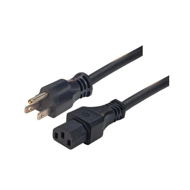 Incorporates a primary connector designed to meet NEMA 5-15P requirements. Fitted with a secondary connector designed to IEC 320-C13 standards. Offered in a shade referred to as Black to enhance the system's aesthetics. Employs a cord type classified as SJT. Sets the ampere rating to 15A. Overall length 6.56' (2.00m) for size indication. The total number of conductors is 3 for wiring or cabling configurations. Type of housing Bag for safeguarding or transporting components. Product status Active concerning availability and lifecycle. Shielding Unshielded for EMI/RFI protection. Style variant Male Pins (Blades) to Female Sockets (Slots) for design or arrangement. Voltage specification 125V for electronic devices. Size of wire gauge 14 AWG according to electrical standards.