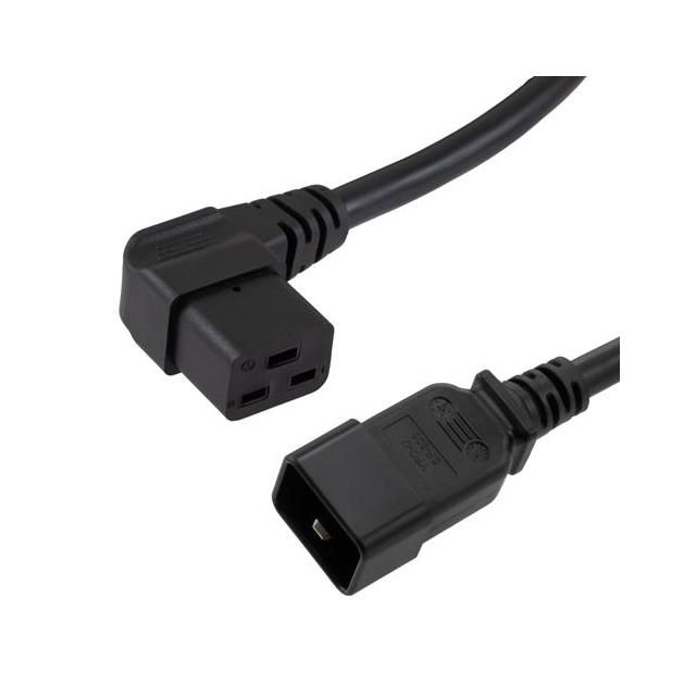 Incorporates a primary connector designed to meet IEC 320-C20 requirements. Fitted with a secondary connector designed to IEC 320-C19, Left Angle standards. Offered in a shade referred to as Black to enhance the system's aesthetics. Employs a cord type classified as SJT. Sets the ampere rating to 20A. Overall length 15.00' (4.57m) for size indication. The total number of conductors is 3 for wiring or cabling configurations. Temperature range 105°C for environmental conditions impacting thermal efficiency. Type of housing Bulk for safeguarding or transporting components. Product status Active concerning availability and lifecycle. Classification series for the product or component PCS. Shielding Unshielded for EMI/RFI protection. Style variant Male Pins (Blades) to Female Sockets (Slots) for design or arrangement. Voltage specification 250V for electronic devices. Size of wire gauge 12 AWG according to electrical standards.