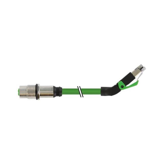 Classified under cable type Round for suitable use. Offered in a shade referred to as Green to enhance the system's aesthetics. Features a connector type acknowledged as Circular 04 pos Female to RJ45, 8p4c, Right Angle. Overall length 0.98' (300.0mm) for size indication. Type of housing Bag for safeguarding or transporting components. Product status Active concerning availability and lifecycle. Shielding Shielded for EMI/RFI protection.