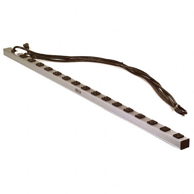 Equipped with 16 AC sockets for connecting various devices. Complies with the criteria of entities acknowledged as CSA, cUL, UL. Includes an AC input socket rated at NEMA 5-15P. Features an AC output socket labeled as NEMA 5-15R. Offers a cord length measuring 15' (4.57m). Indicates the maximum allowable current rating at 15A. Constructed from Aluminum material to guarantee strength and reliability. The input voltage established at 120V for reliable performance. Mounting configuration Bench, Rack, Wall for structural stability. Overload protection Circuit Breaker(s) for safeguarding the device. Type of housing Bulk for safeguarding or transporting components. Product status Active concerning availability and lifecycle. Space utilized North America for the application or implementation of the product. Current supply level 120V for electrical parameters. Type classification Outlet Strip, Power Strip for specifications. Input voltage 120V required for devices.