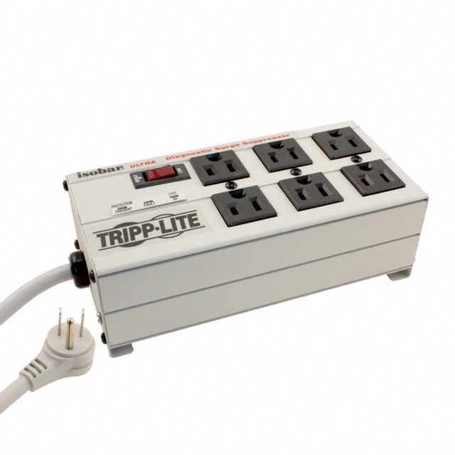 Equipped with 6 AC sockets for connecting various devices. Complies with the criteria of entities acknowledged as CSA, cUL, UL. Includes an AC input socket rated at NEMA 5-15P. Features an AC output socket labeled as NEMA 5-15R. Offers a cord length measuring 6' (1.83m). Indicates the maximum allowable current rating at 12A. Represents the energy capacity noted at 3330J. Constructed from Steel material to guarantee strength and reliability. The input voltage established at 120V for reliable performance. Mounting configuration Bench, Floor, Wall for structural stability. Overload protection Circuit Breaker(s) for safeguarding the device. Type of housing Bulk for safeguarding or transporting components. Product status Active concerning availability and lifecycle. Space utilized North America for the application or implementation of the product. Classification series for the product or component ISOBAR®. Current supply level 120V for electrical parameters. Type classification Outlet Strip, Power Strip, Surge Protector for specifications. Input voltage 120V required for devices.