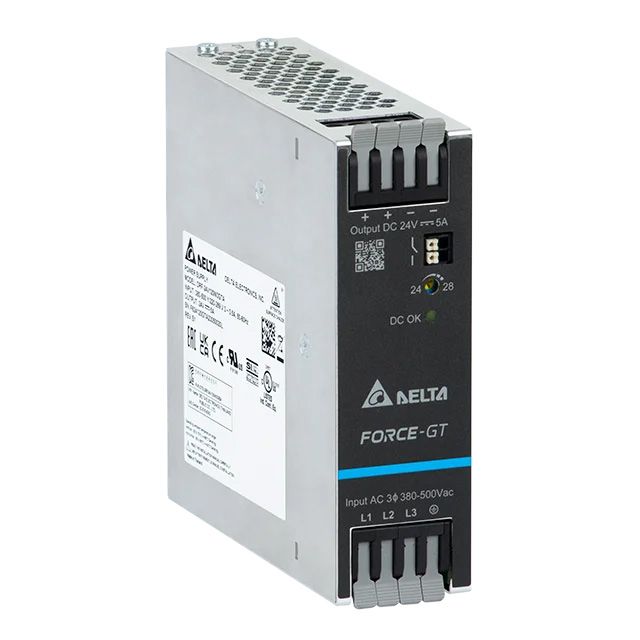 Supports an AC input voltage rated at 320 ~ 575 VAC (3 Phase), 340 ~ 575 VAC (2 Phase) for extensive operational compatibility. Perfectly designed for situations involving ITE (Commercial), Laboratory. Complies with the criteria of entities acknowledged as CB, CE, cULus, cURus, EAC, SIQ, UKCA. Supplies peak output current defined as 5A. Offers an efficiency rating calculated at 87.5%. Equipped with features categorized as Adjustable Output, PFC. Configured with AC input type for diverse applications. The input voltage established at 320 ~ 575 VAC (3 Phase), 340 ~ 575 VAC (2 Phase) for reliable performance. Overall outputs 1 for device connections. Temperature range -25°C ~ 70°C (With Derating) for environmental conditions impacting thermal efficiency. Voltage 24V for optimal output electric potential. Type of housing Box for safeguarding or transporting components. Power measured in watts 120W for optimal operation. Product status Active concerning availability and lifecycle. Classification series for the product or component Force-GT (120W). Details on package size 4.93" L x 1.50" W x 4.88" H (125.2mm x 38.1mm x 124.0mm) for electrical or mechanical components. Measurement dimensions 4.93" L x 1.50" W x 4.88" H (125.2mm x 38.1mm x 124.0mm) for component specifications. Standard compliance code 61010-1;60950-1;62368-1 for regulations. Isolation voltage 4 kV for electrical safety. Output 1 voltage 24V across different outputs.